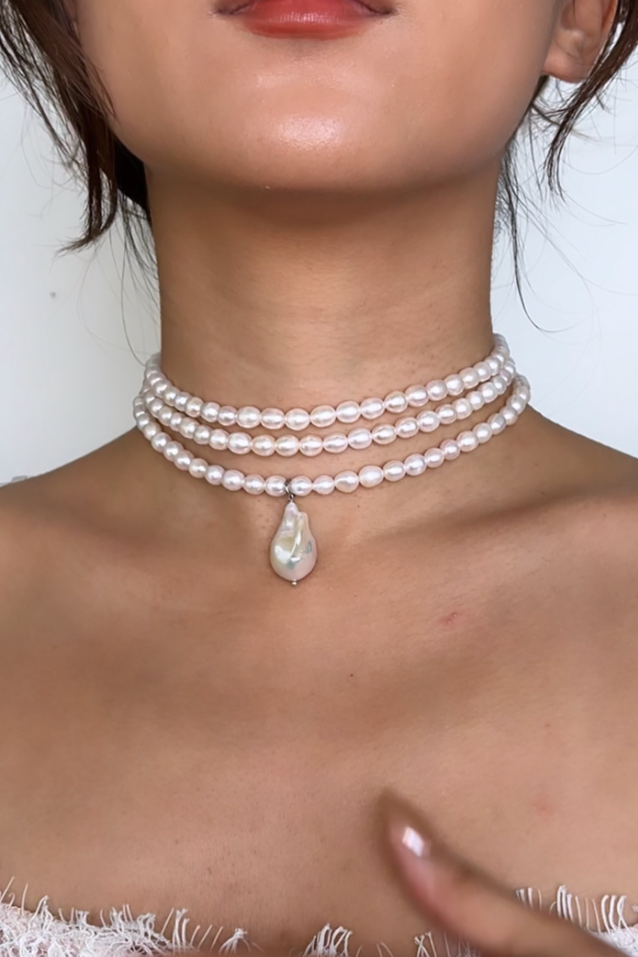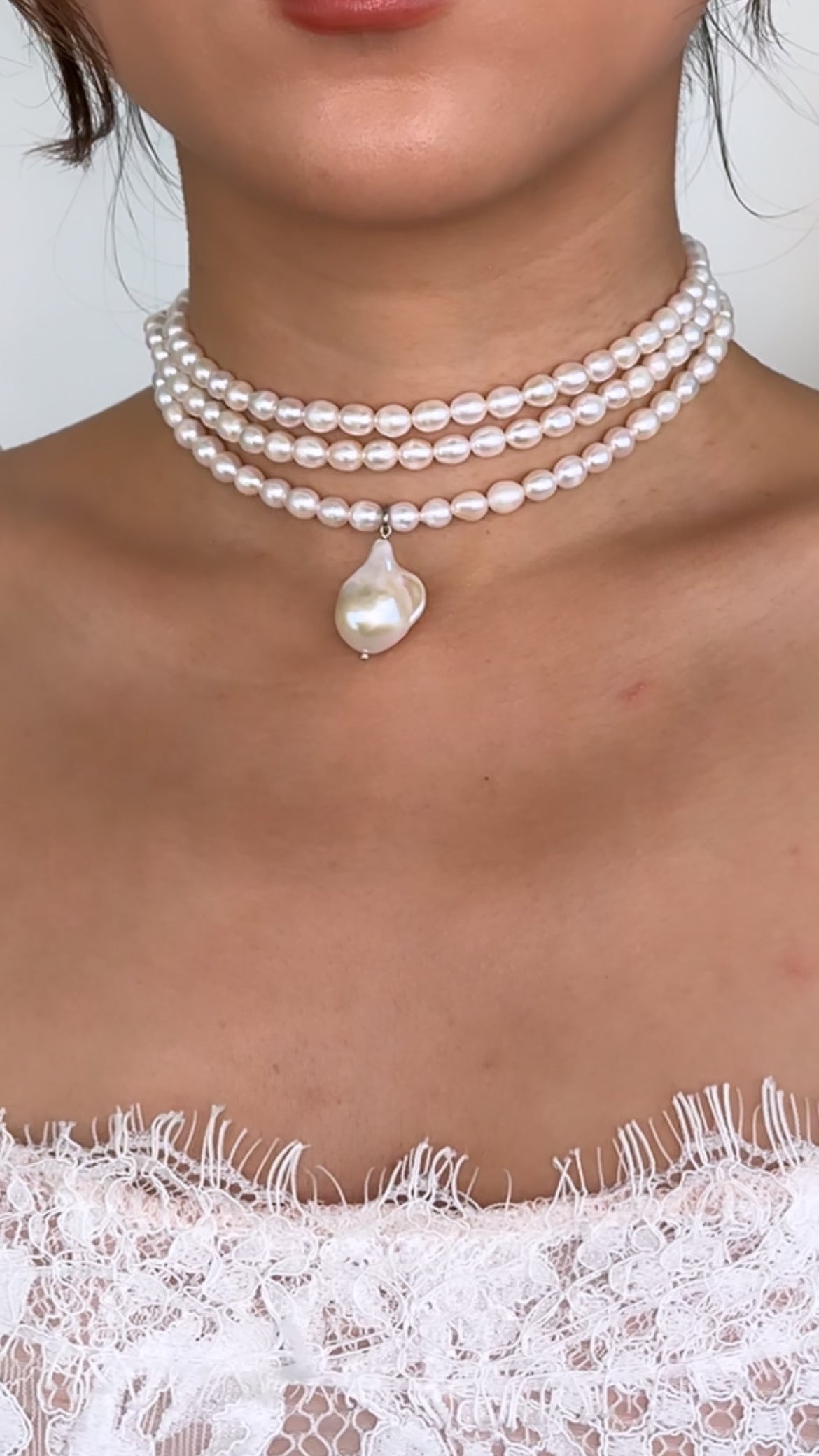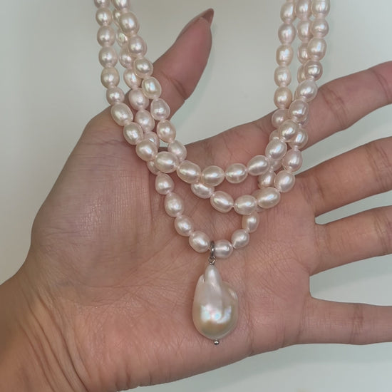 Baroque Pendant: Featuring an iridescent baroque pearl pendant, each piece is naturally unique, adding a special touch to your necklace.
