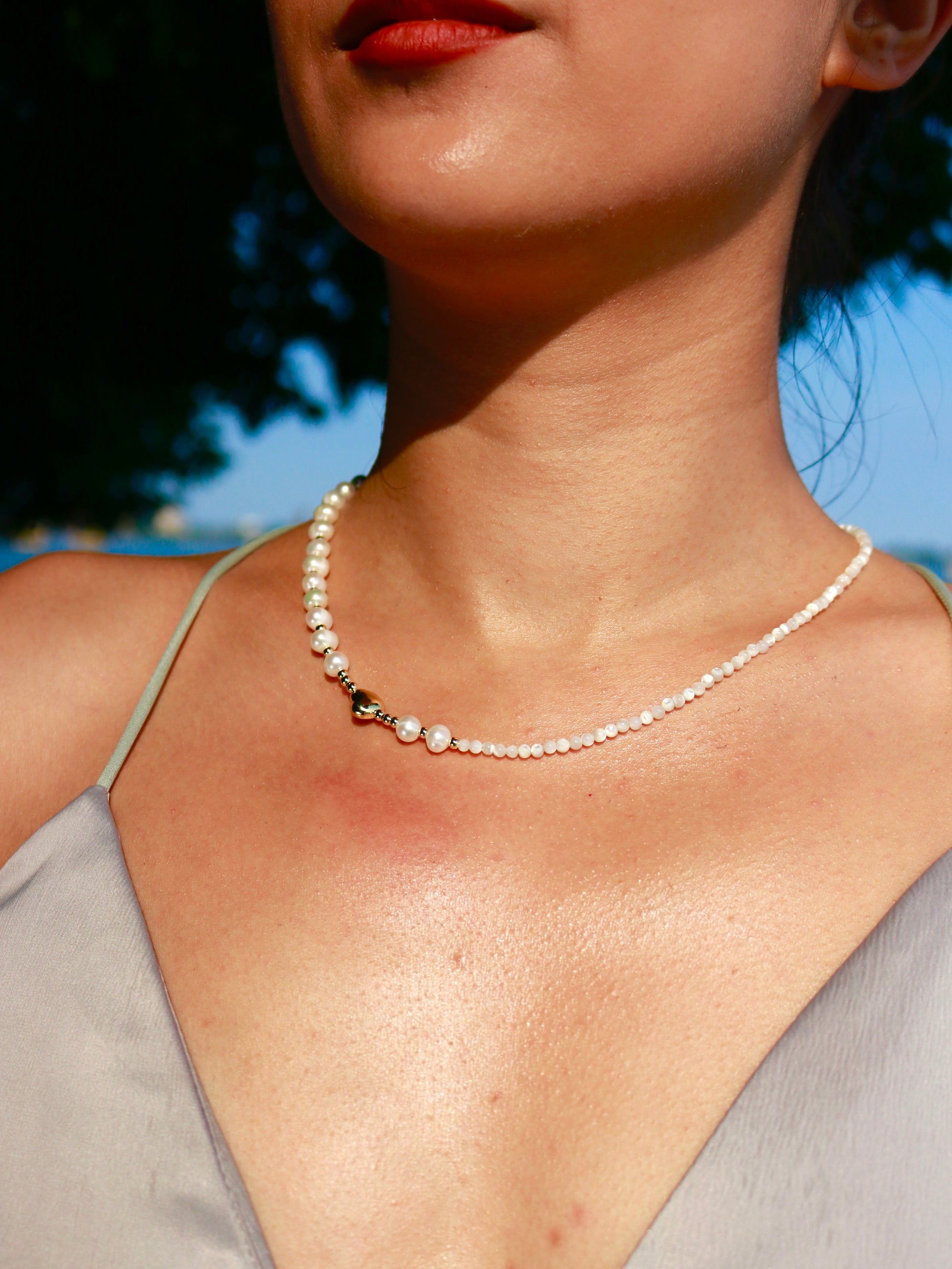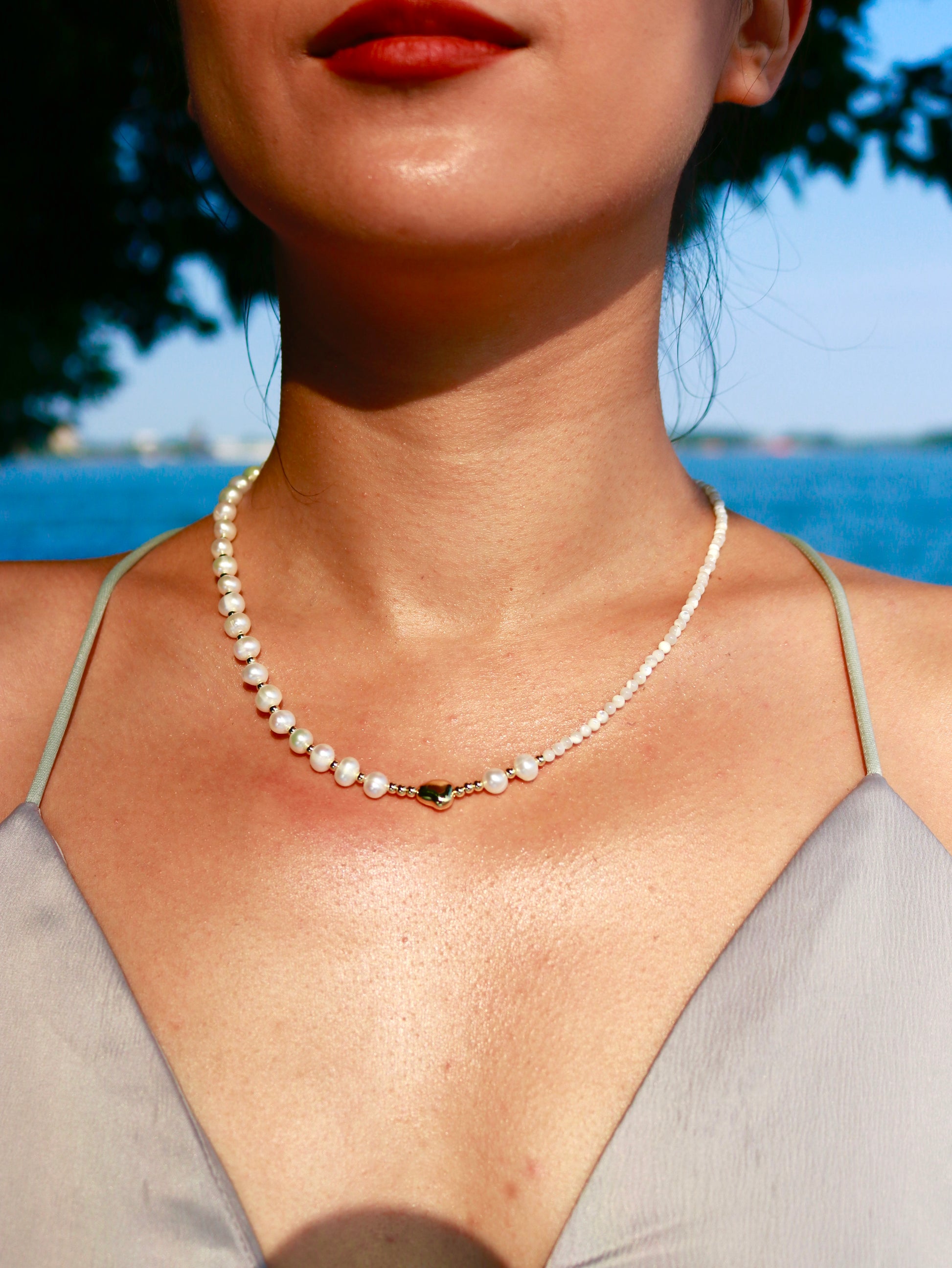 Elevate your style with the Liora Necklace, a beautiful blend of natural freshwater pearls and white seashell beads. Set in l 14K gold-filled material, this necklace exudes a refined coastal charm, perfect for any occasion.