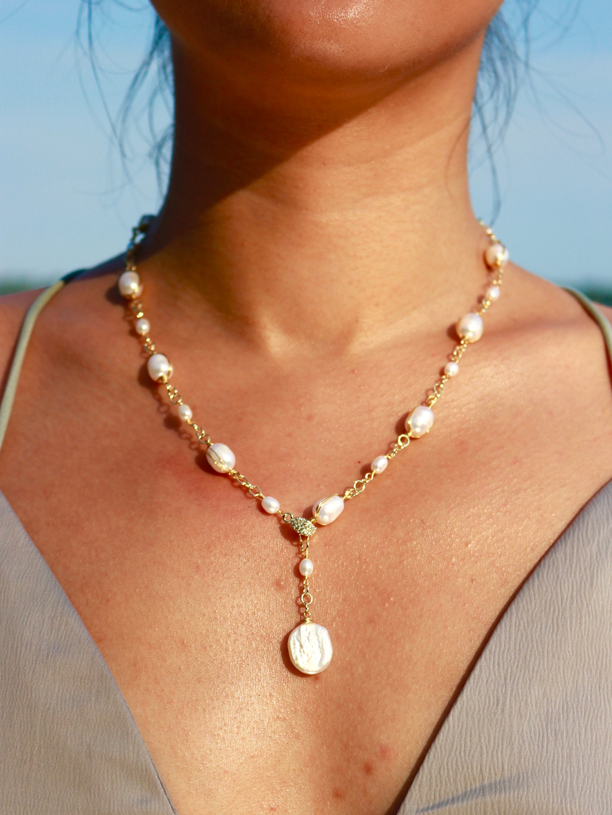 14K Gold-Filled Chain: The chain is made with 14K gold-filled material, bringing a warm, radiant glow that enhances the pearls.