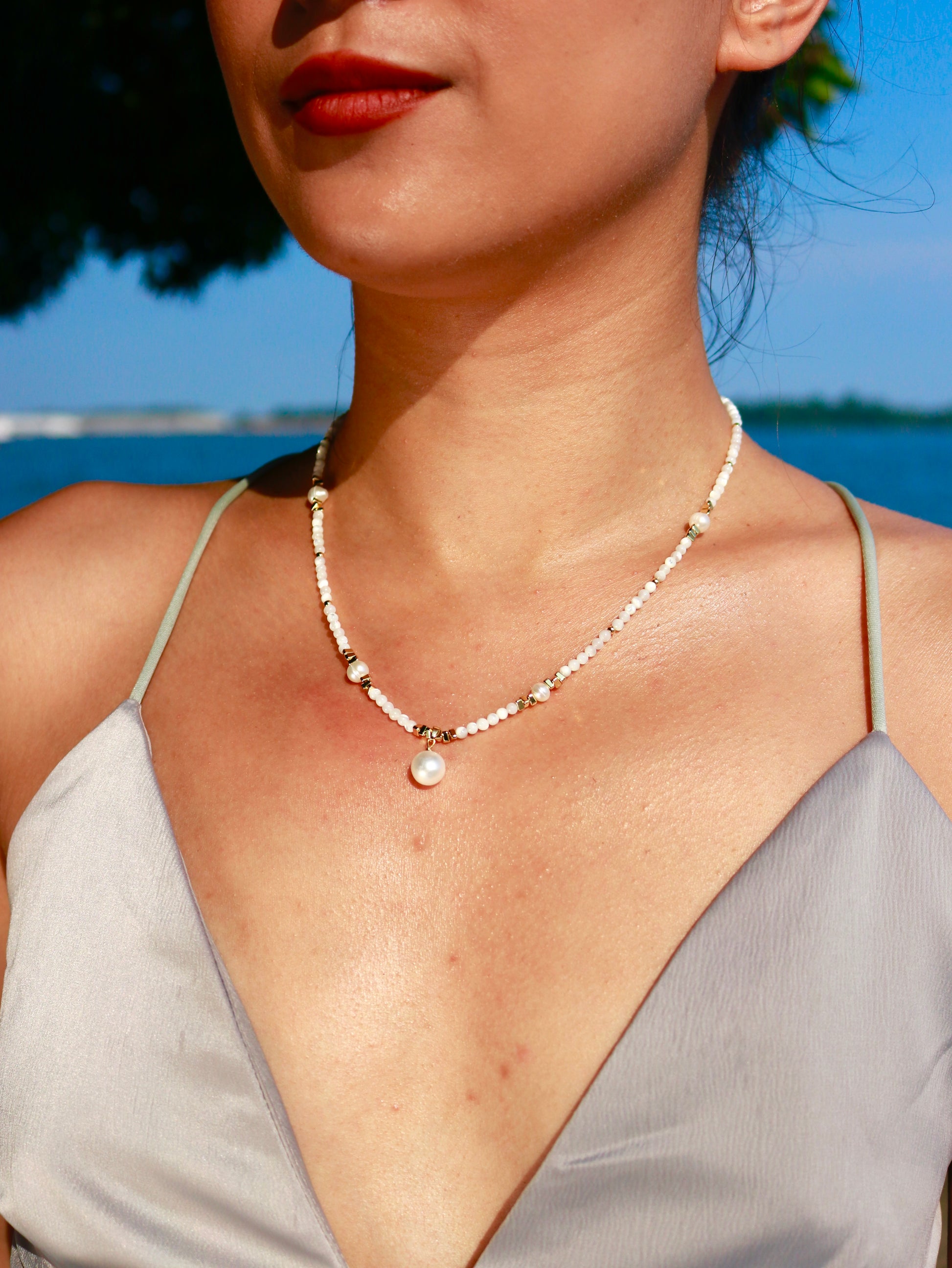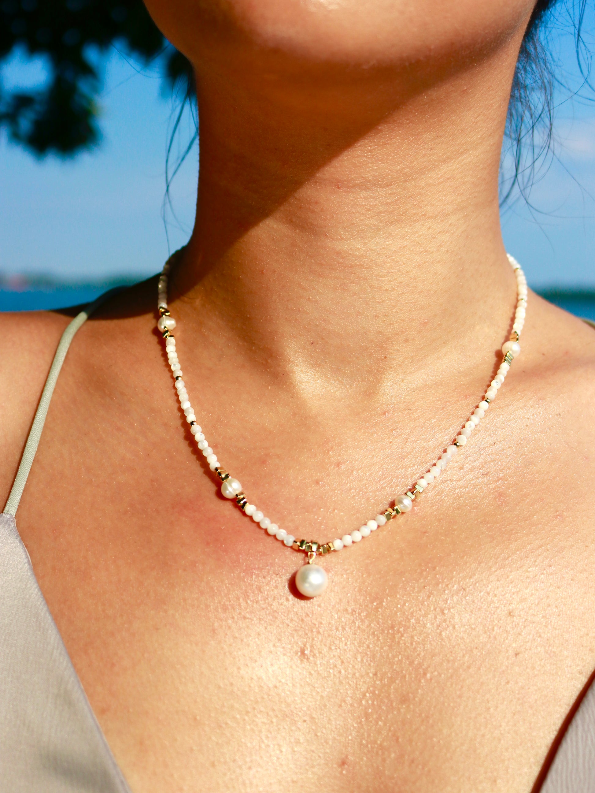 Whoever said shells are just for the beach? Think again - Our signature Penelope Necklace combines the natural beauty of trochus shell beads with the luxurious touch of 14K gold-filled accents.