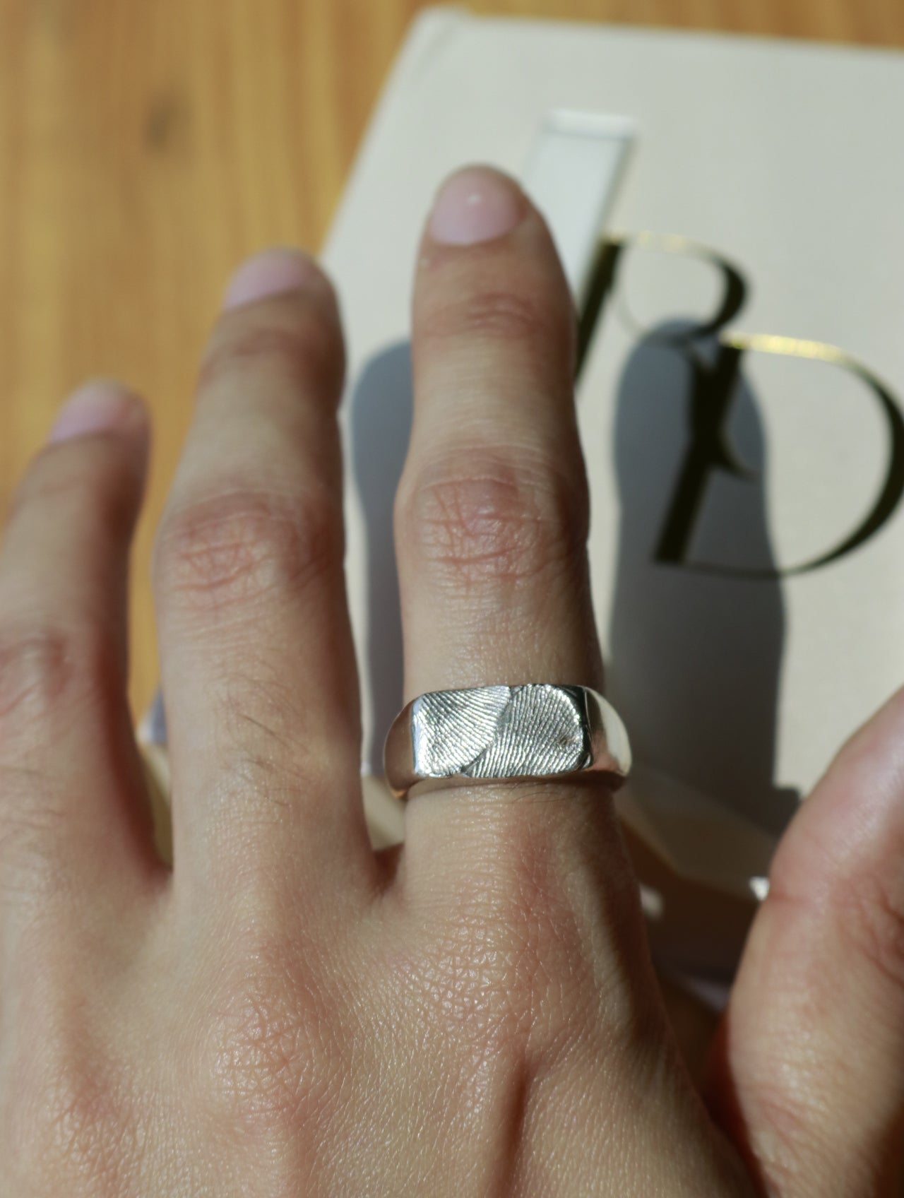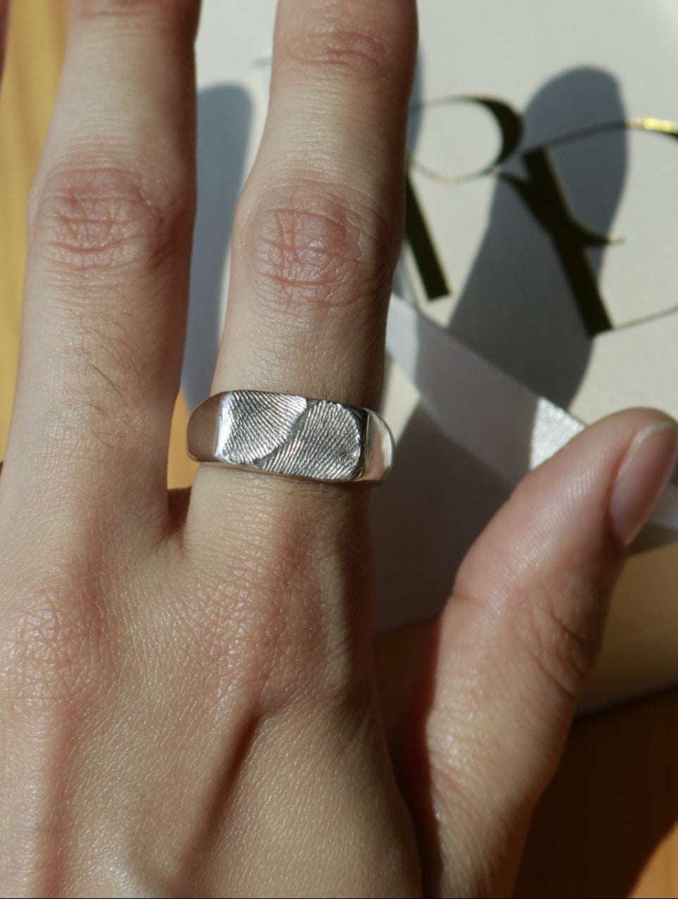 Capture a lasting impression with the Signet Ring Imprint Kit from Raco Duo. This kit allows you to create a beautifully personalized signet ring, featuring the imprint of someone and/or yourself —whether it’s a fingerprint from a family member, or partner. The perfect way to wear a memory, always.
